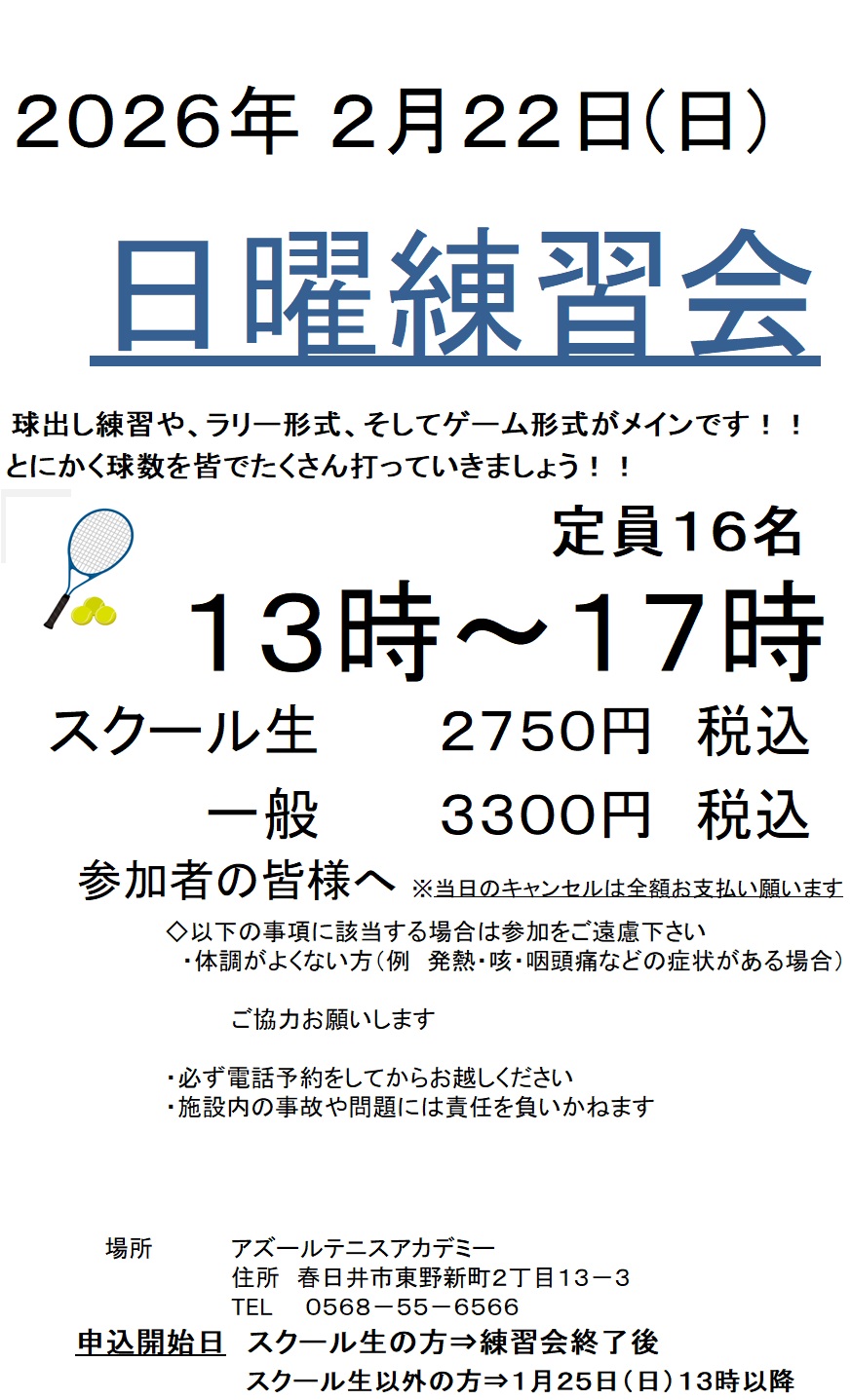 春日井インターチェンジから近く、春日井市はもちろん、名古屋市、小牧市などからも通いやすいテニススクールです。