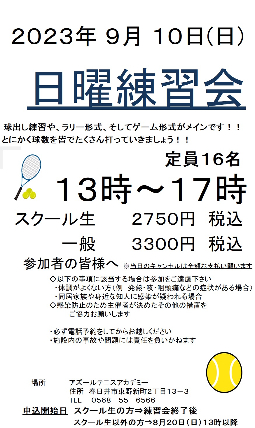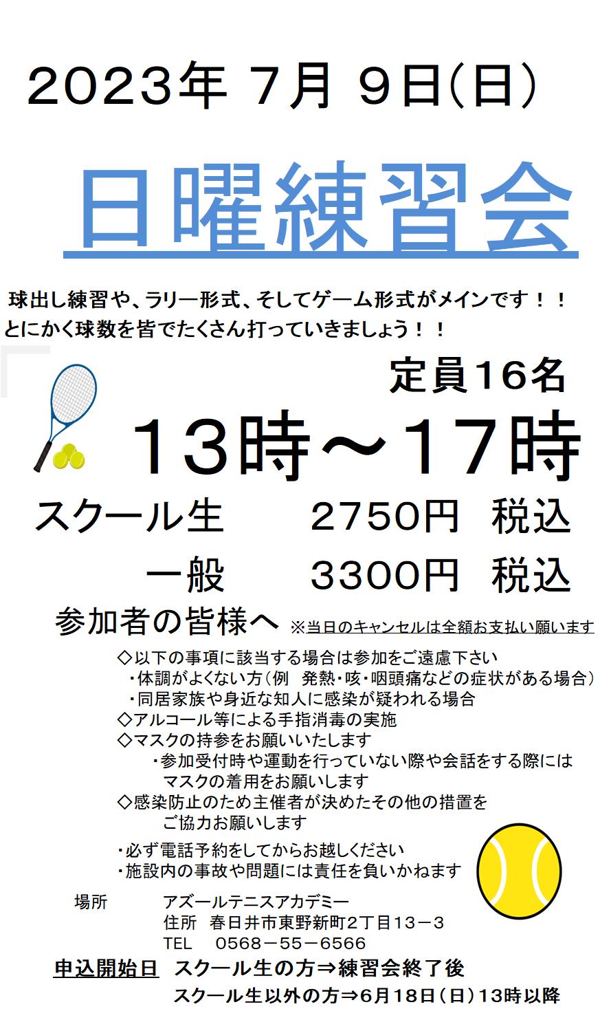日曜練習会 2023.07.09 & アズールスクール生サマーテニストーナメント2023