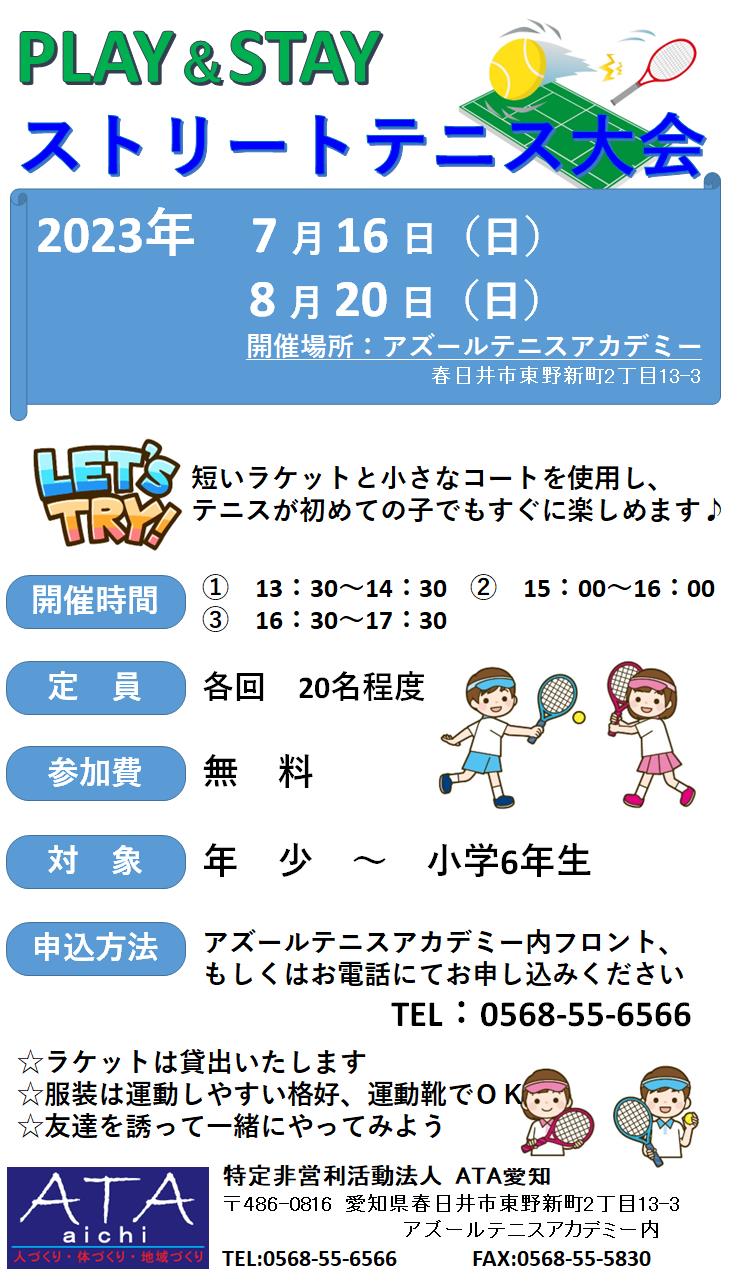 特定非営利活動法人ATA愛知のイベントをアズールテニスアカデミーを会場として開催いたします。