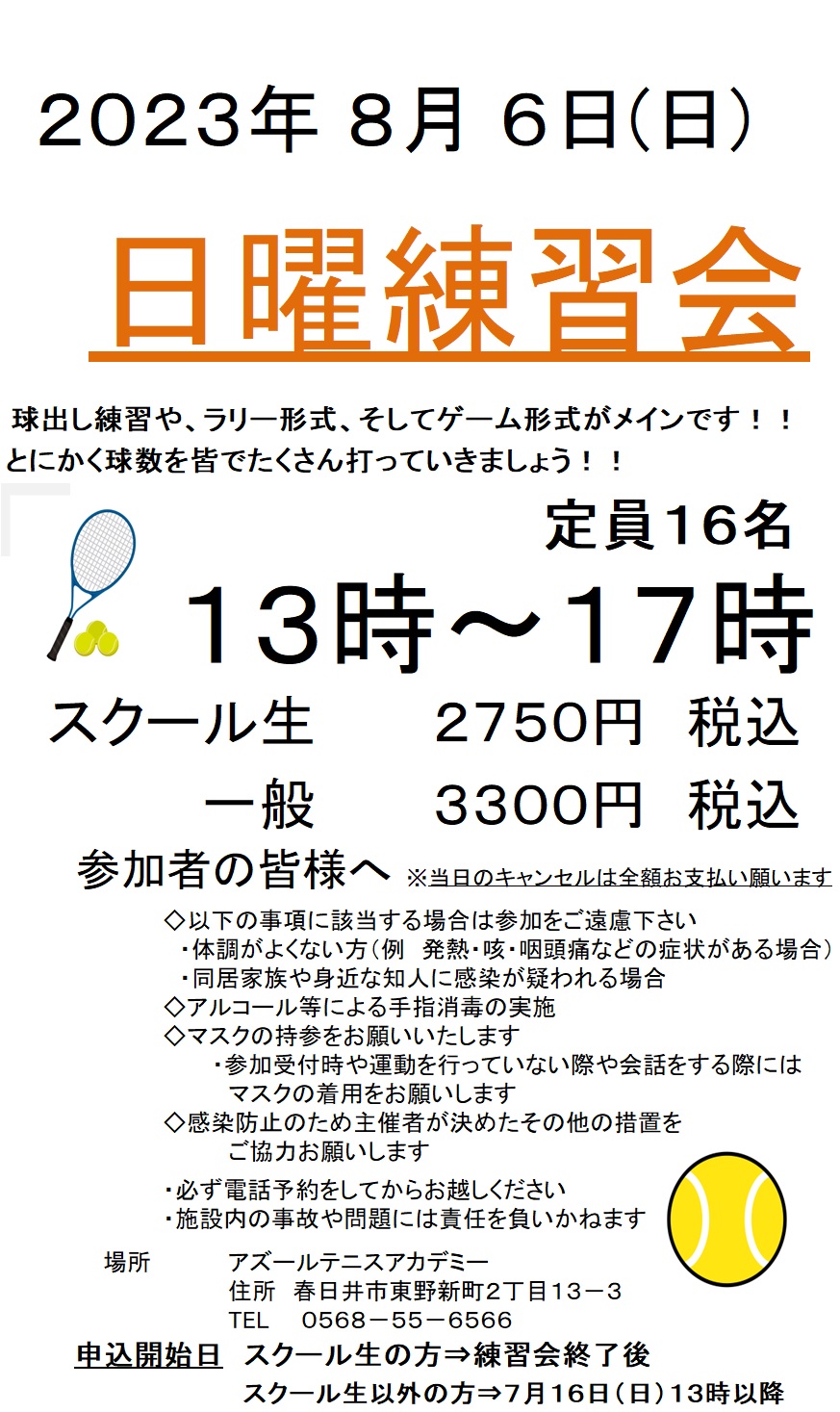 日曜練習会 2023.08.06 & 夏休み早朝レッスン