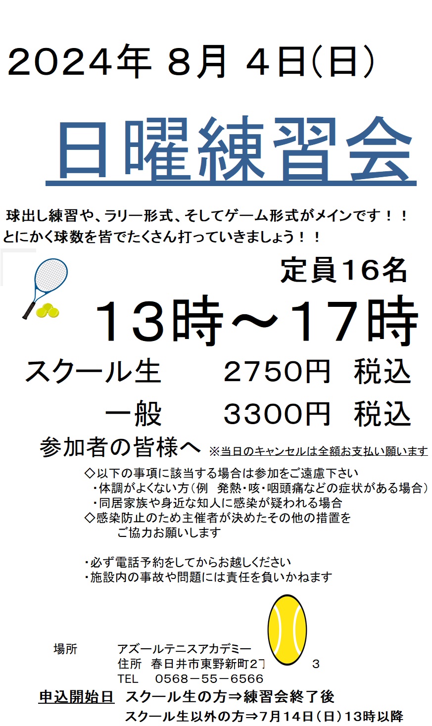 日曜練習会 2024.8.4 & PLAY&STAY ストリートテニス大会 2024(7/28)
