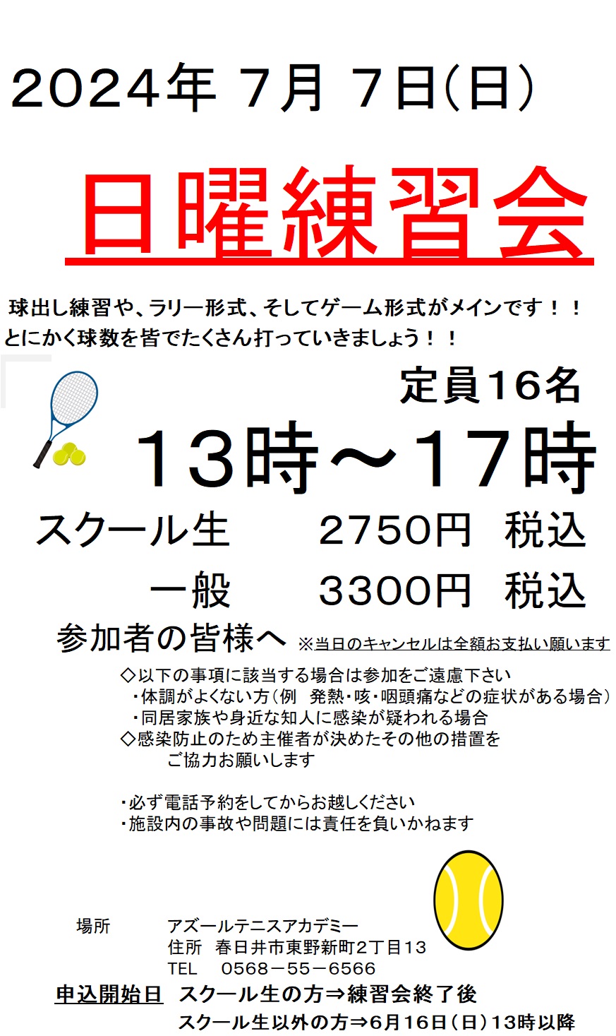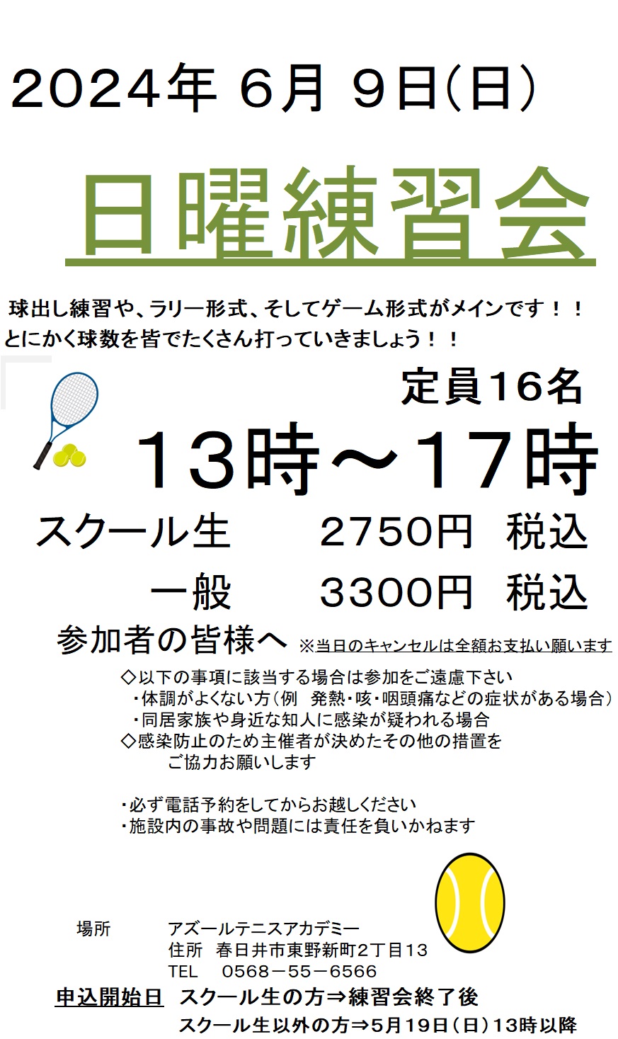 6月16日(日)13時以降よりスクール生以外の方も申込みいただけます。