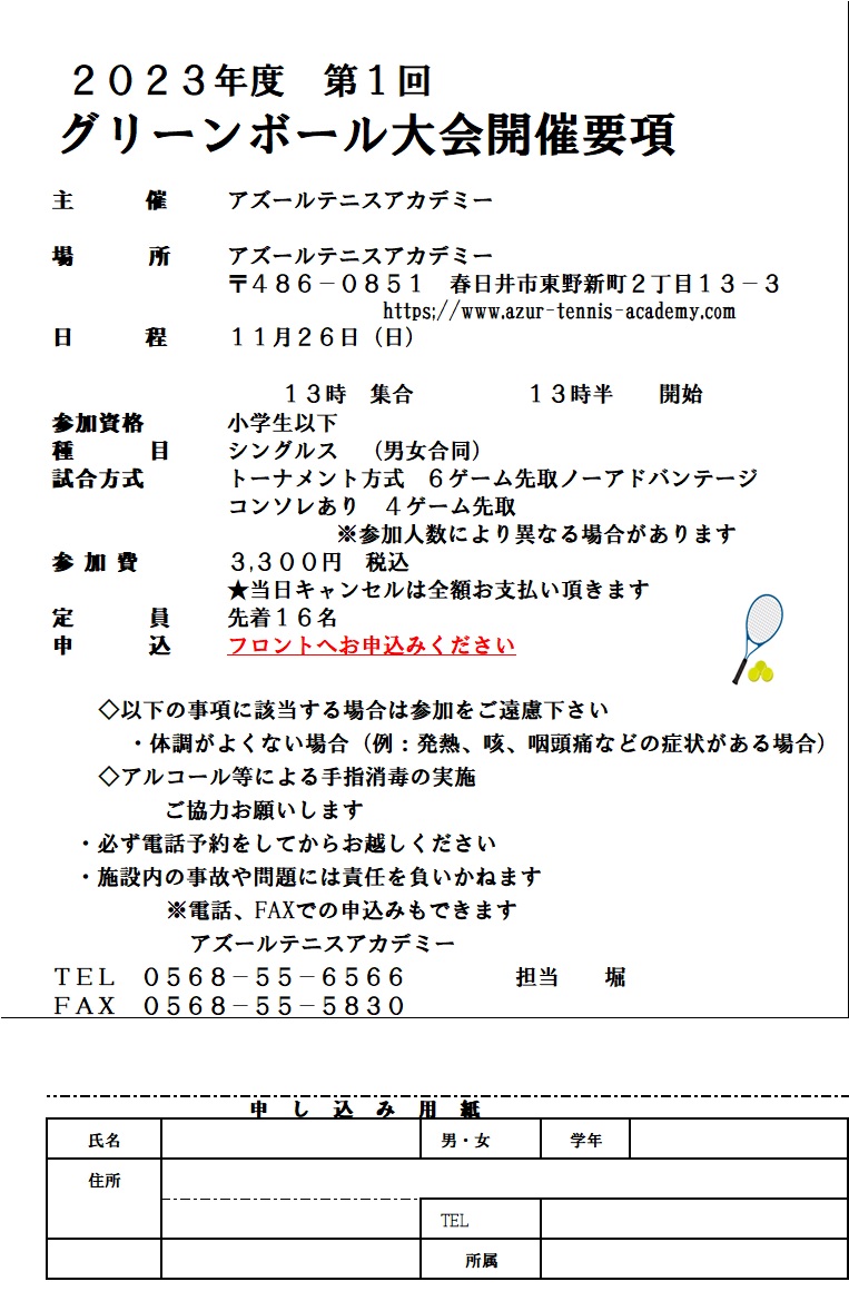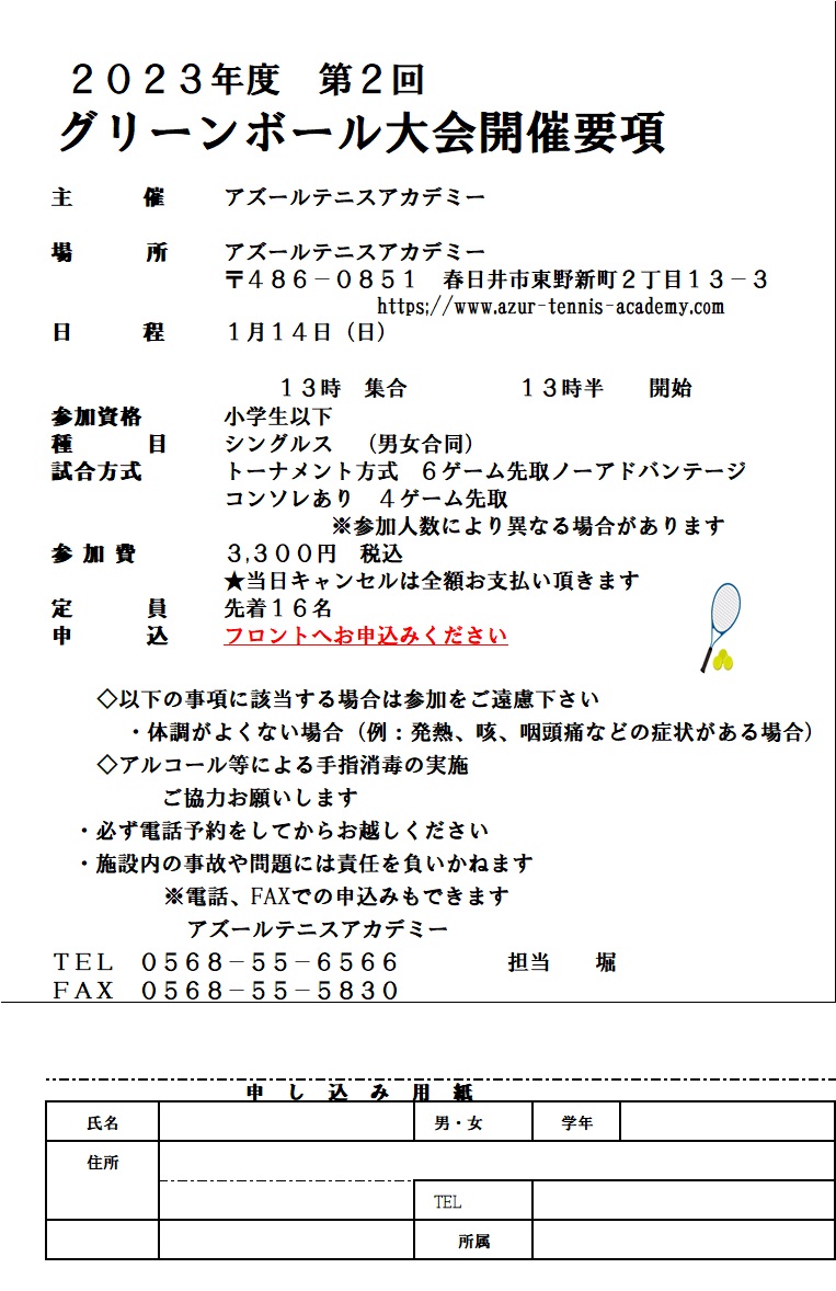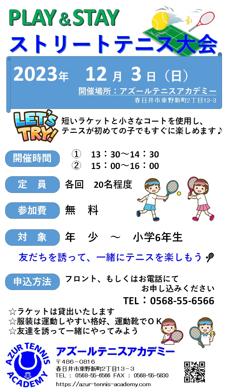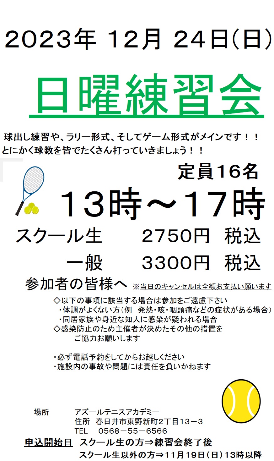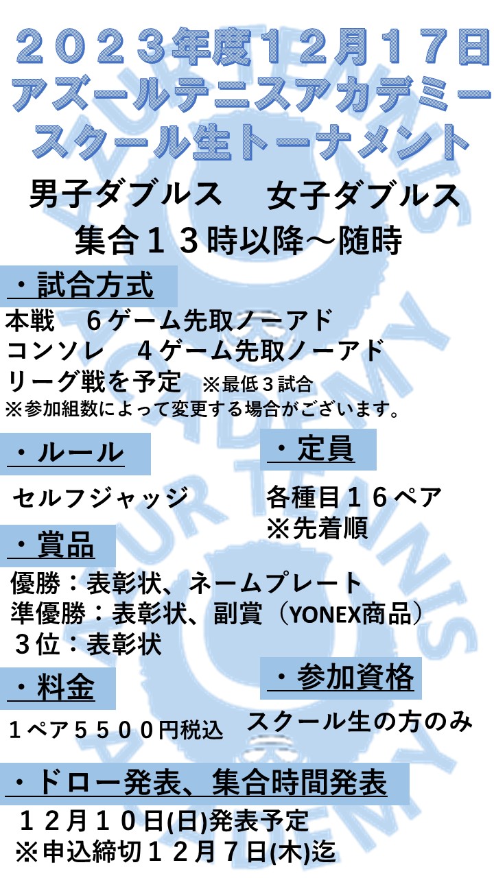 アズールテニスアカデミー スクール生トーナメント 2023.12.17 & 日曜練習会 2023.12.24